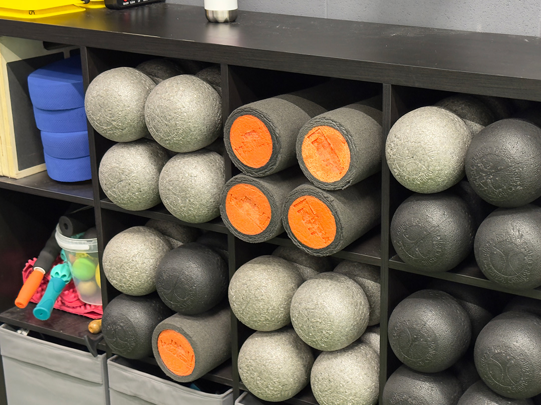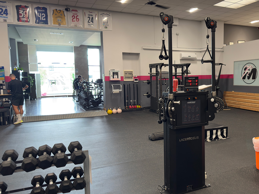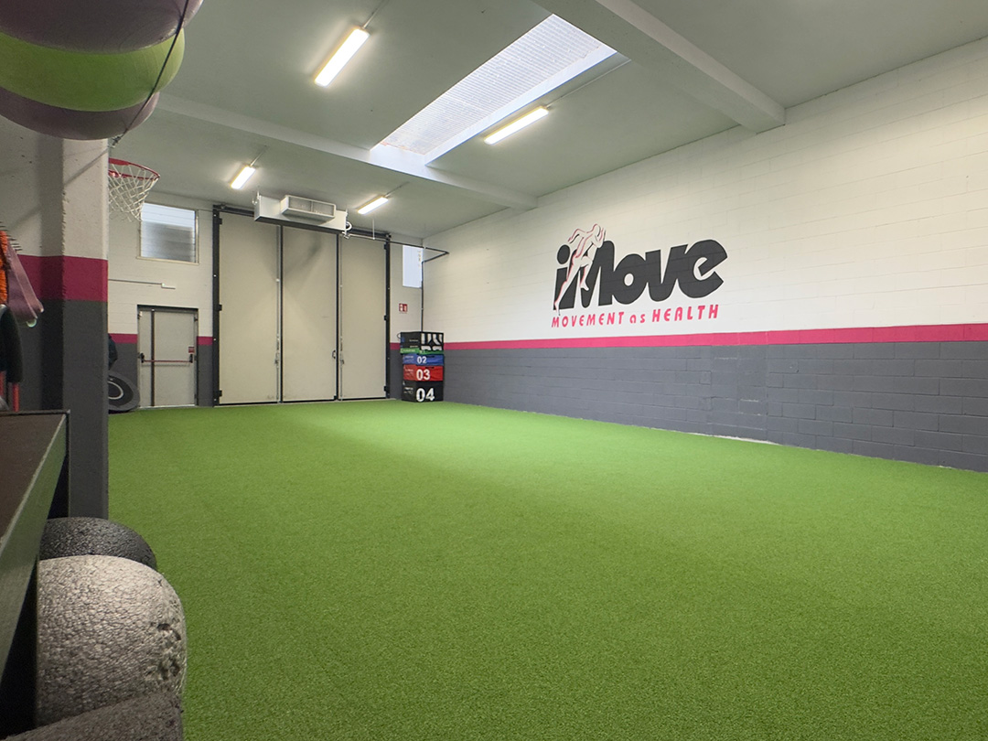 Il layout dello studio è stato una diretta conseguenza del Metodo. Abbiamo strutturato la sala con un manto erboso che permette di svolgere la fase iniziale dell’allenamento ed una area gommata con delle pedane per svolgere la parte riguardante la forza